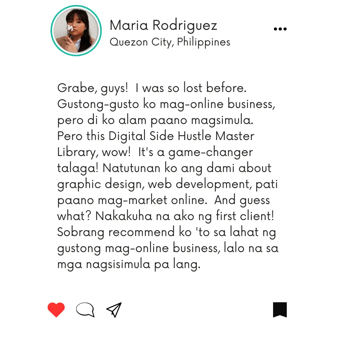 Hindi na kailangan ng prior experience. Ang aming practical digital side-hustle ay dinisenyo para maging madaling sundan, kahit na bago ka pa lang sa online business.
